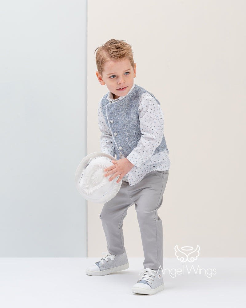 Includes fedora hat and coordinating belt or suspenders, and matching bow tie.