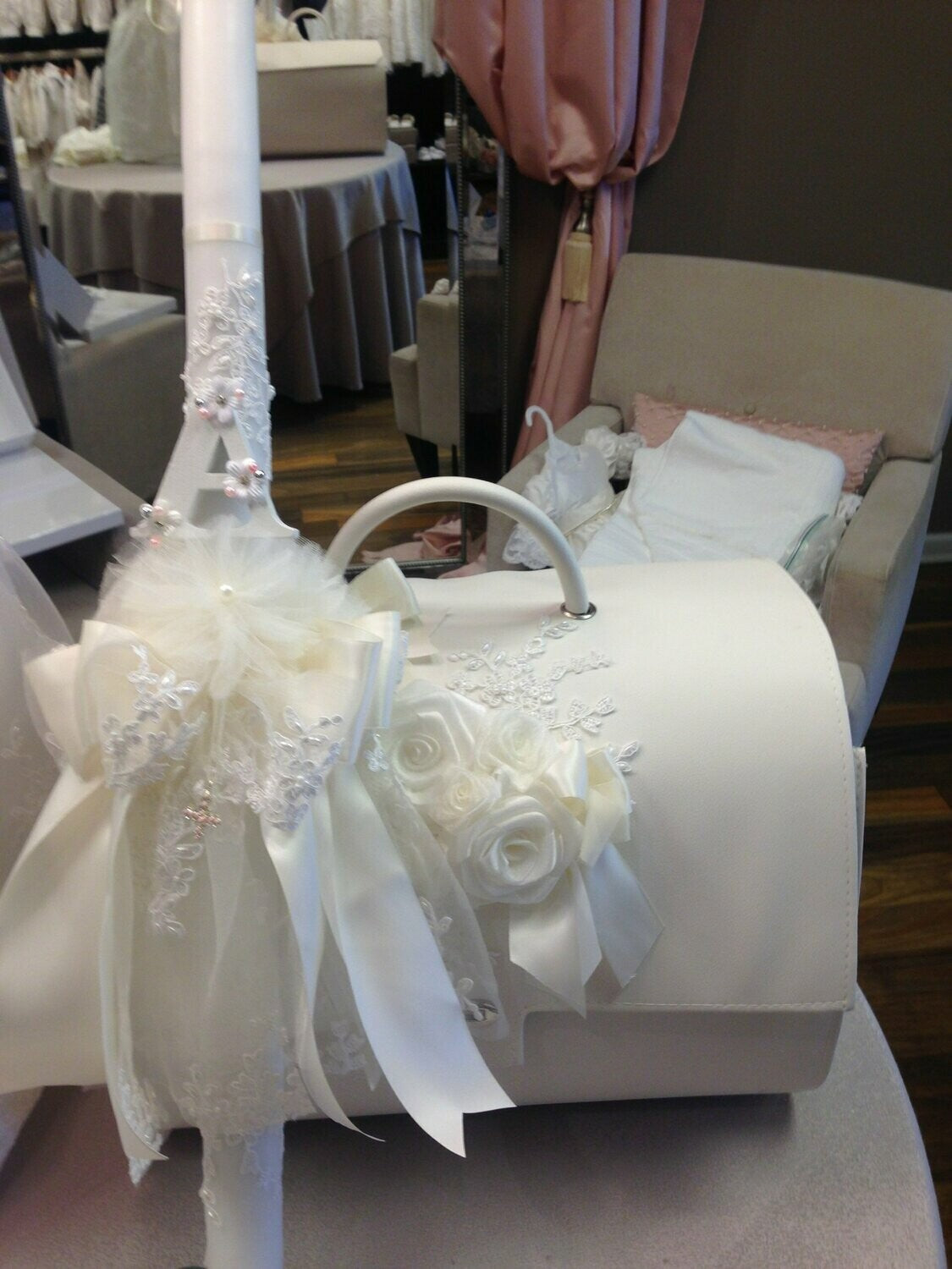 Our ceremonial baptismal lambades are made of the finest materials and craftsmanship. The symbolism of the Lambades is to light the way for the child to become an Orthodox Christian.