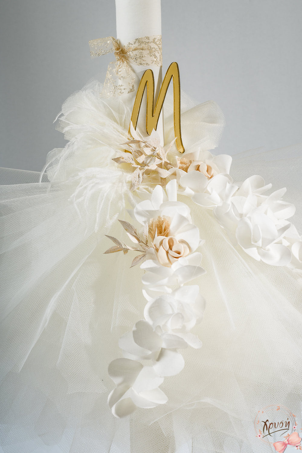 IVORY SKIRTING WITH INITIAL and CASCADING PETALS