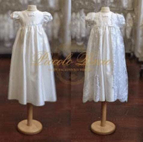 Each Piccolo Bacio gown is proudly made in the USA. Fine silks, laces, pearls and Swarovski crystals embellish these gorgeous heirloom pieces.