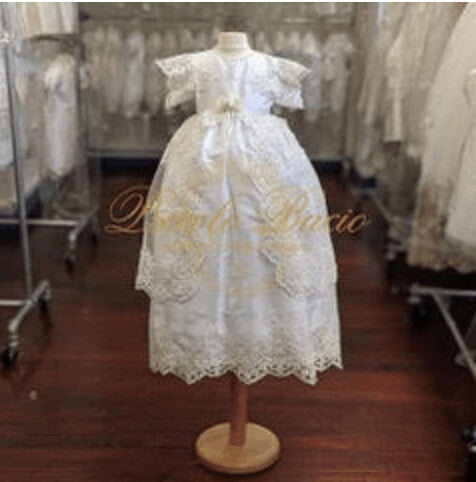 Each Piccolo Bacio gown is proudly made in the USA. Fine silks, laces, pearls and Swarovski crystals embellish these gorgeous heirloom pieces.