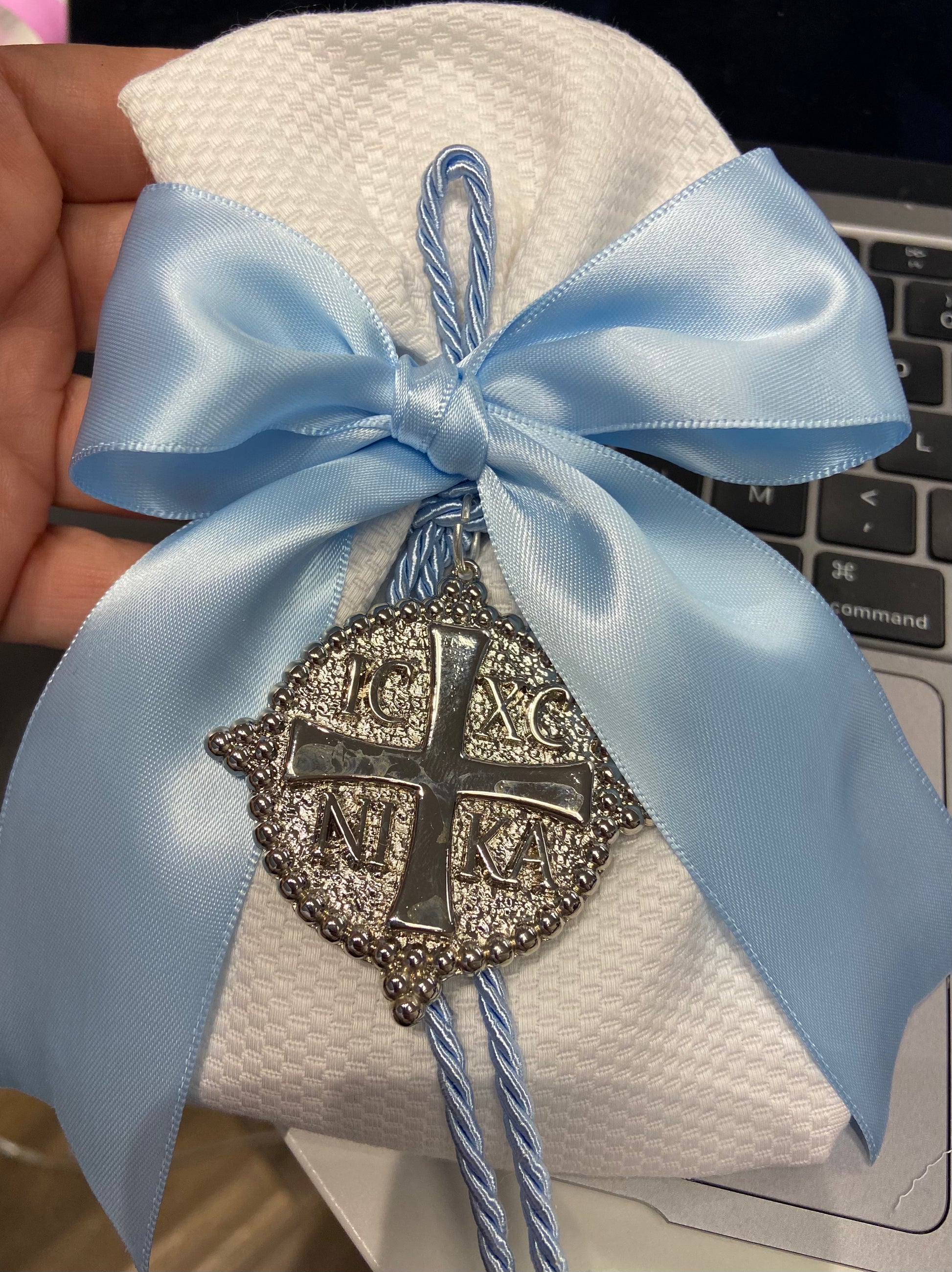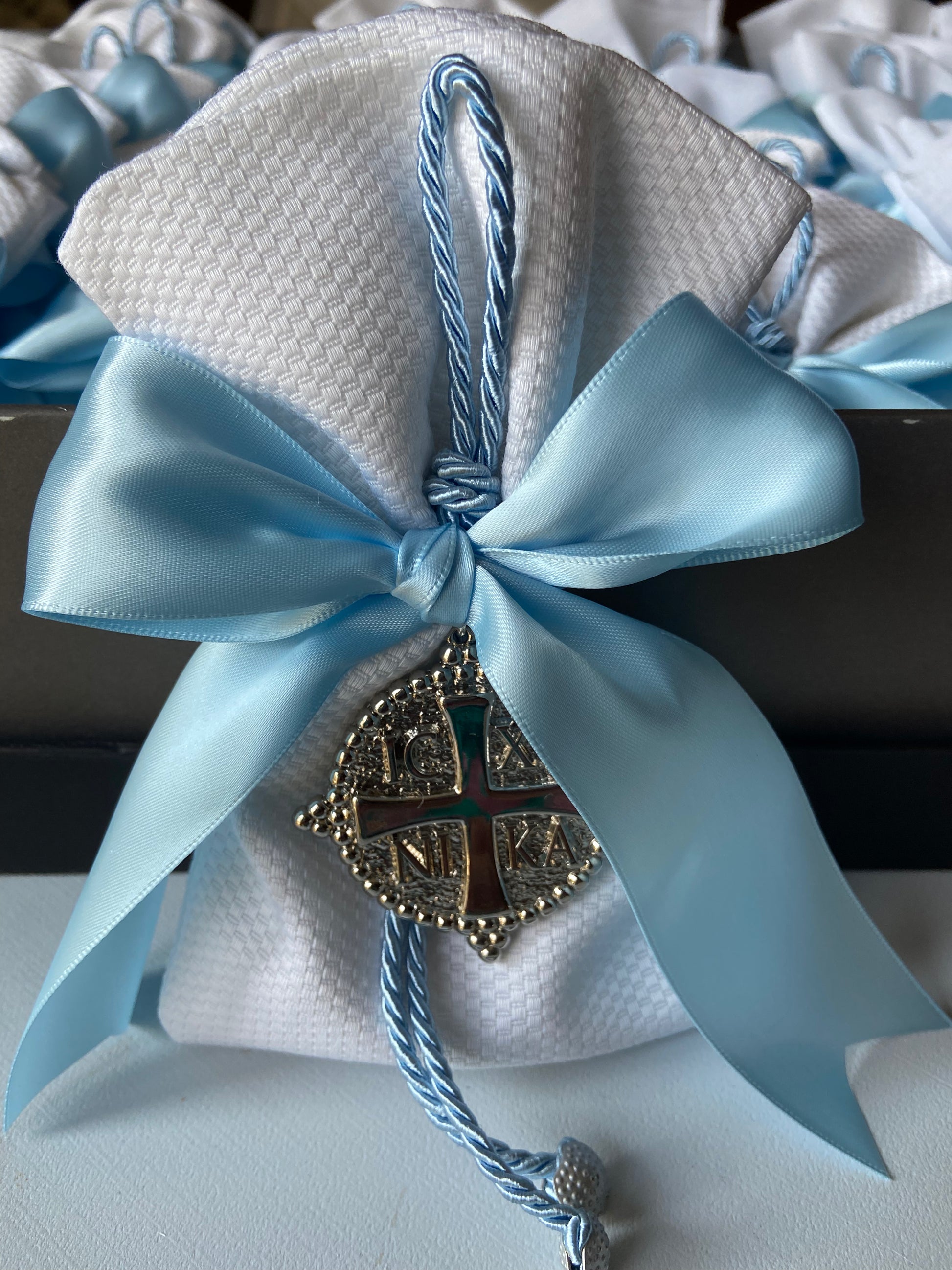 All styles are available with your choice of color ribbon and pouch. Please contact the boutique for custom orders at 224-217-9670 or by email at stella@stellaweddingsbaptisms.com.