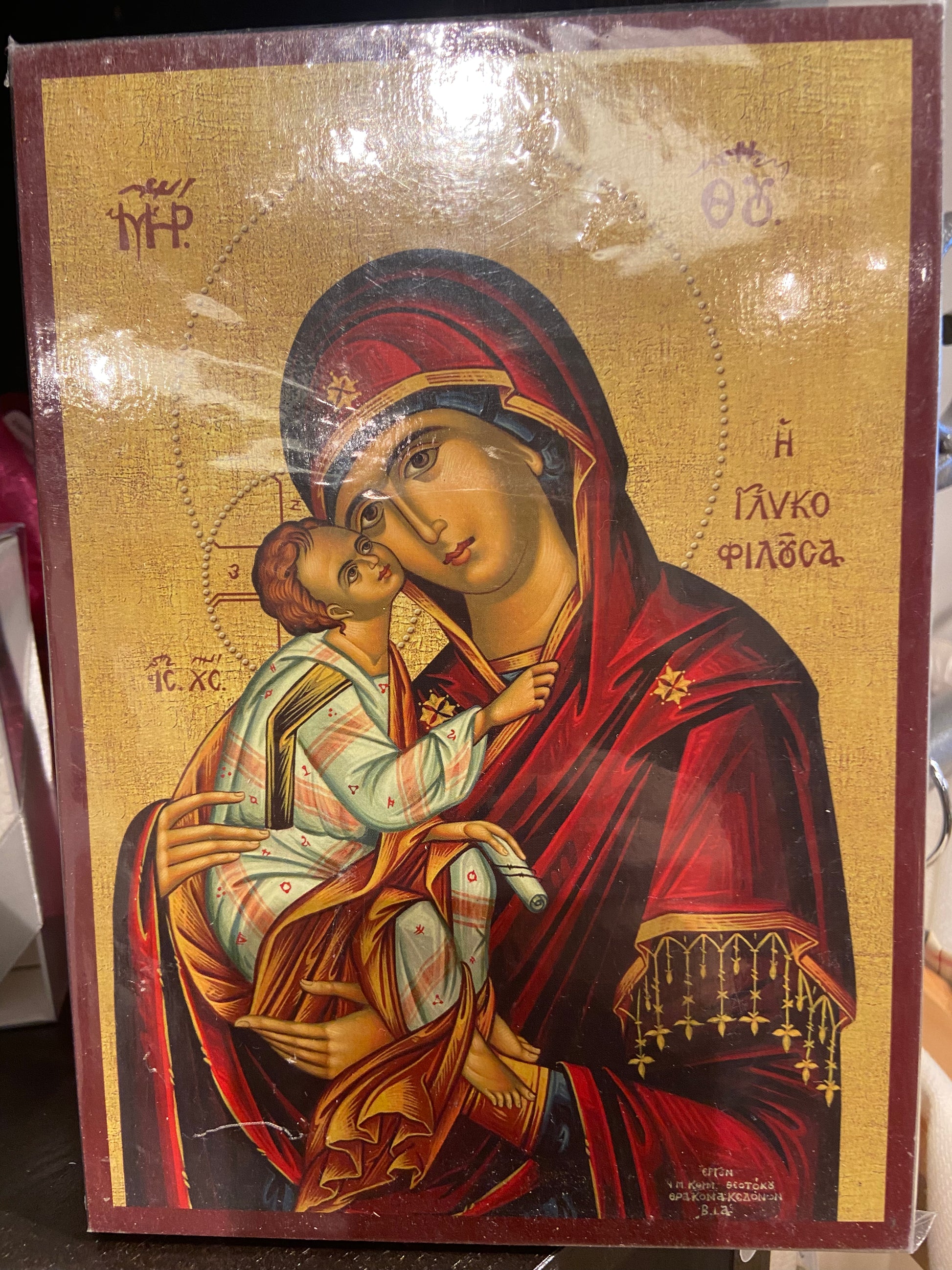 Our religious icons are handmade by monks in Meteora, Kalabaka, Greece.